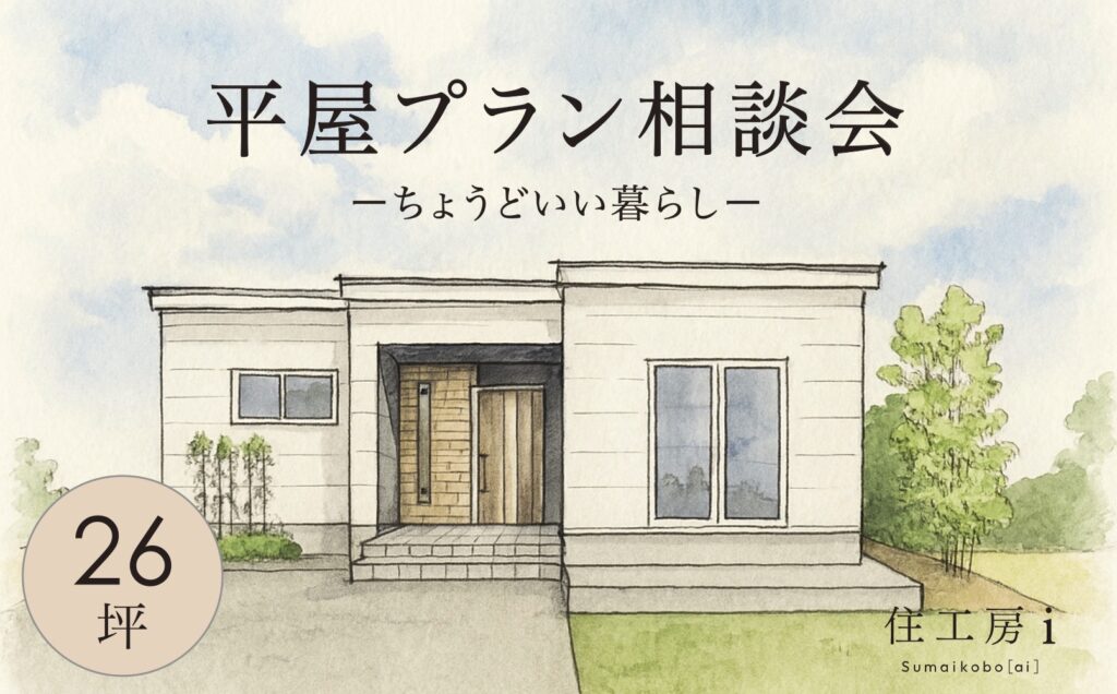 今回の相談会では、26坪の平屋をベースに、暮らしやすさを考えたプランをご紹介。