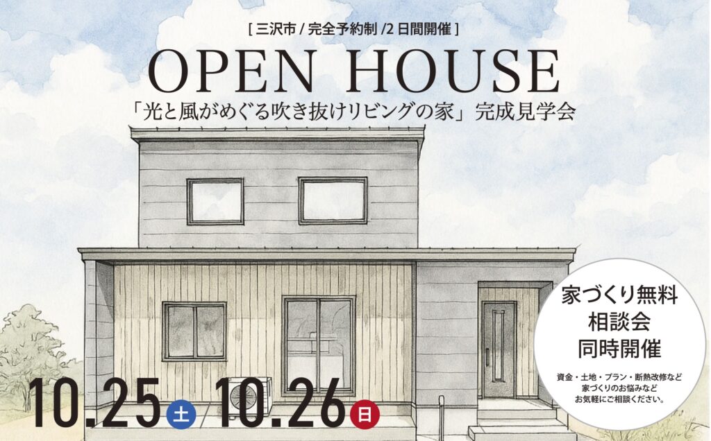 「光と風がめぐる吹き抜けリビングの家」完成見学会