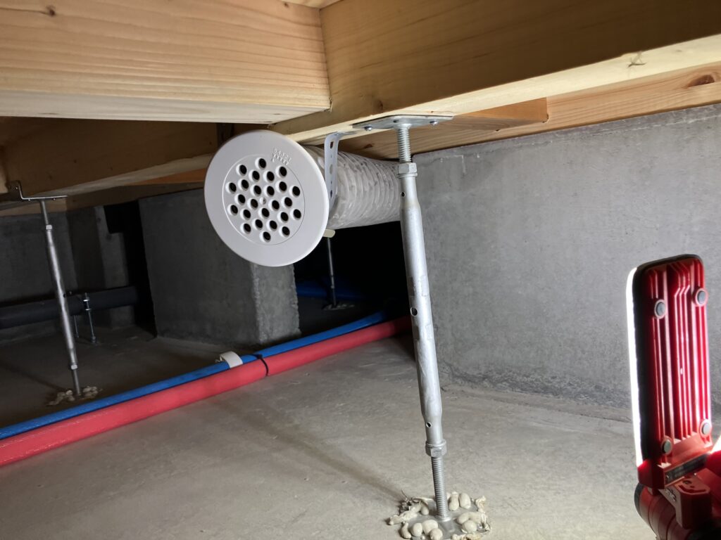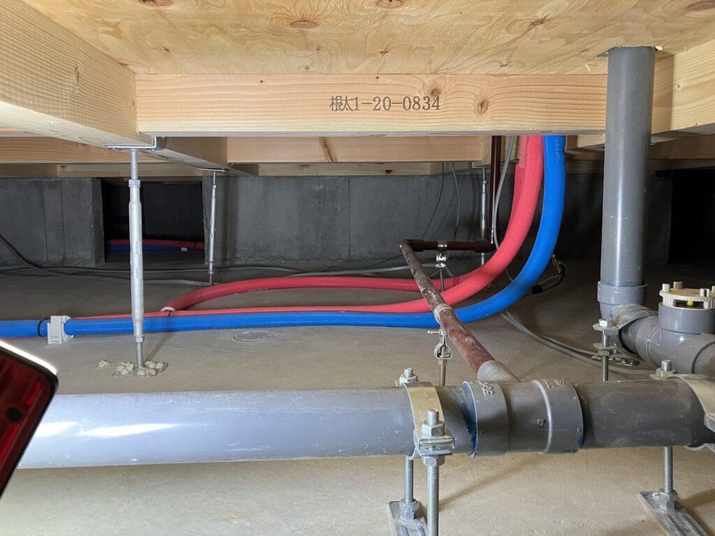 さらに、配管の施工状況や換気部材の設置状態もチェックし、今後の生活に支障が出ないよう細部まで確認を行っています。床下は湿気がこもりやすい環境ですが、適切な換気対策が施されていることで、カビや腐朽のリスクも低減されています。